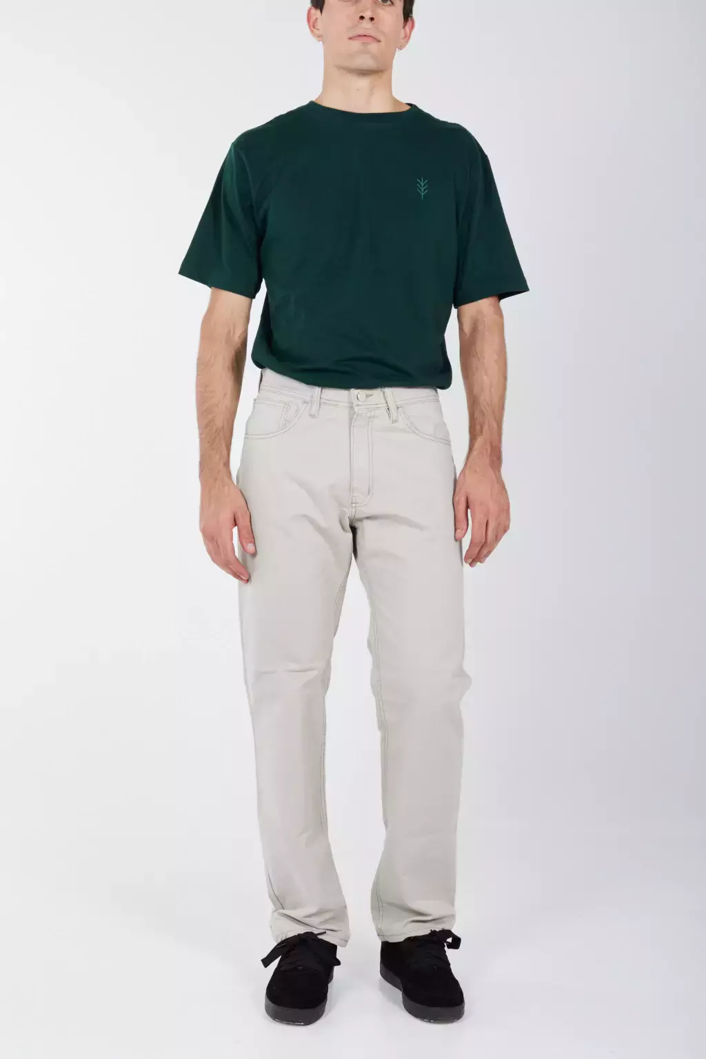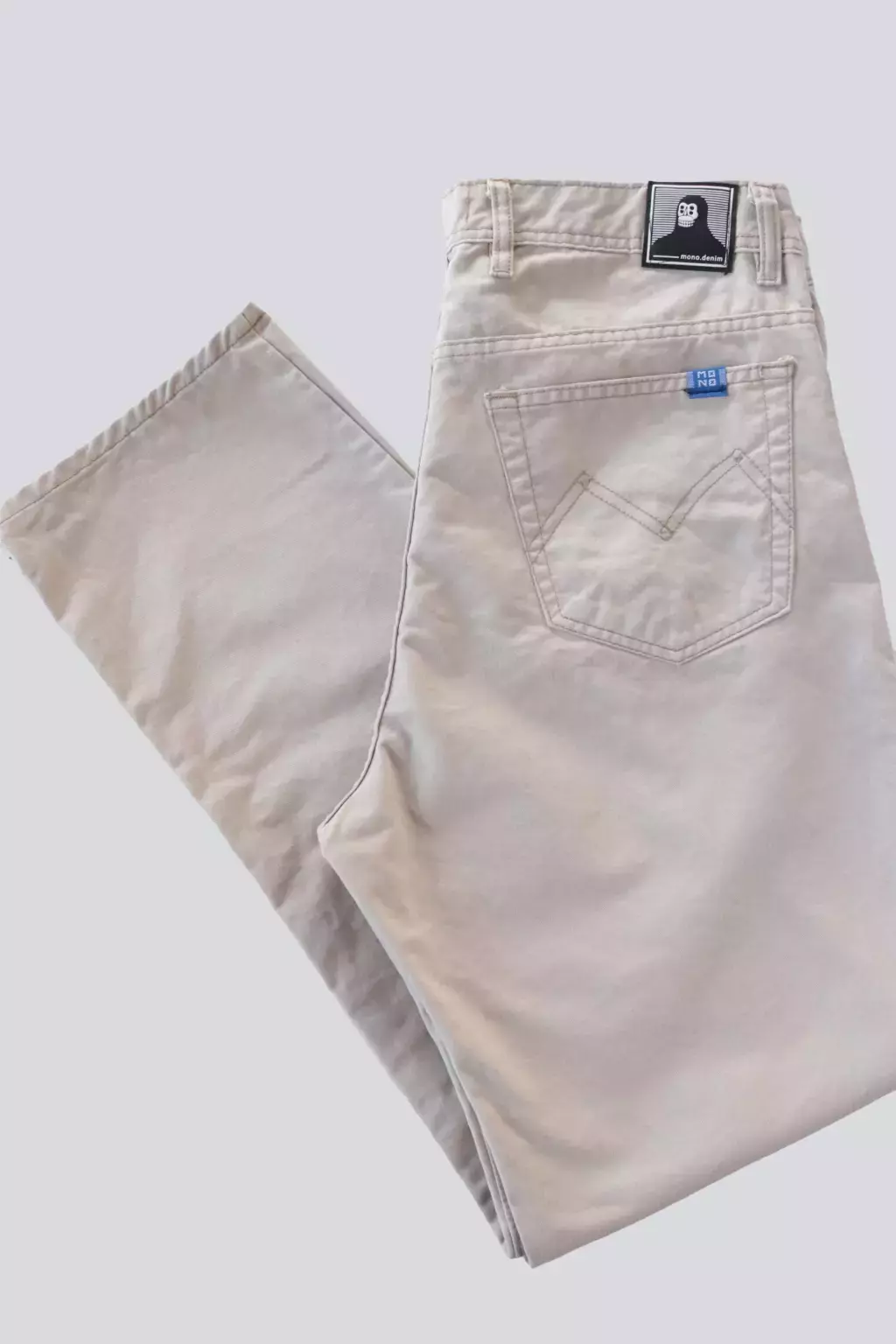 Pantalón de gabardina microesmerilada (textura muy suave) tiro bajo, corte recto.